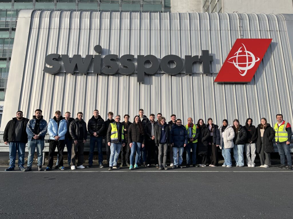 Im Rahmen einer Tagesfahrt des KNI Ausbildungsverbundes besuchten insgesamt 26 Auszubildende aus unseren Mitgliedsunternehmen die Firma Swissport am Flughafen Düsseldorf. Bei einer umfassenden Führung erhielten sie einen Blick hinter die Kulissen – von der Auftragserteilung bis zur Bereitstellung der Sendungen am Rollfeld. Dabei wurden alle relevanten Arbeitsbereiche vorgestellt und durch interessante Fakten aus dem Arbeitsalltag ergänzt.